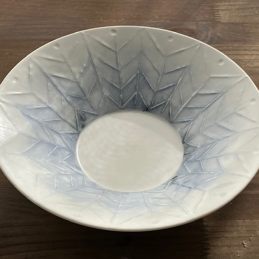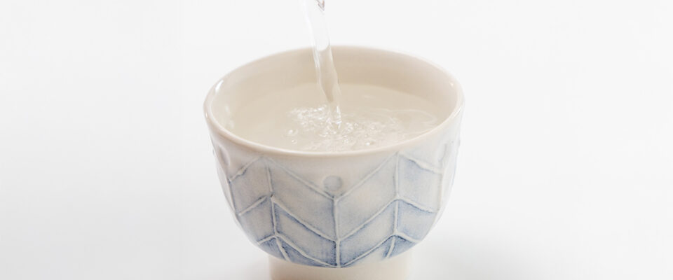 作品には草花を絵付けすることが多いのですが、今回作りましたぐい吞には、絵ではなく、地模様を施してあります。